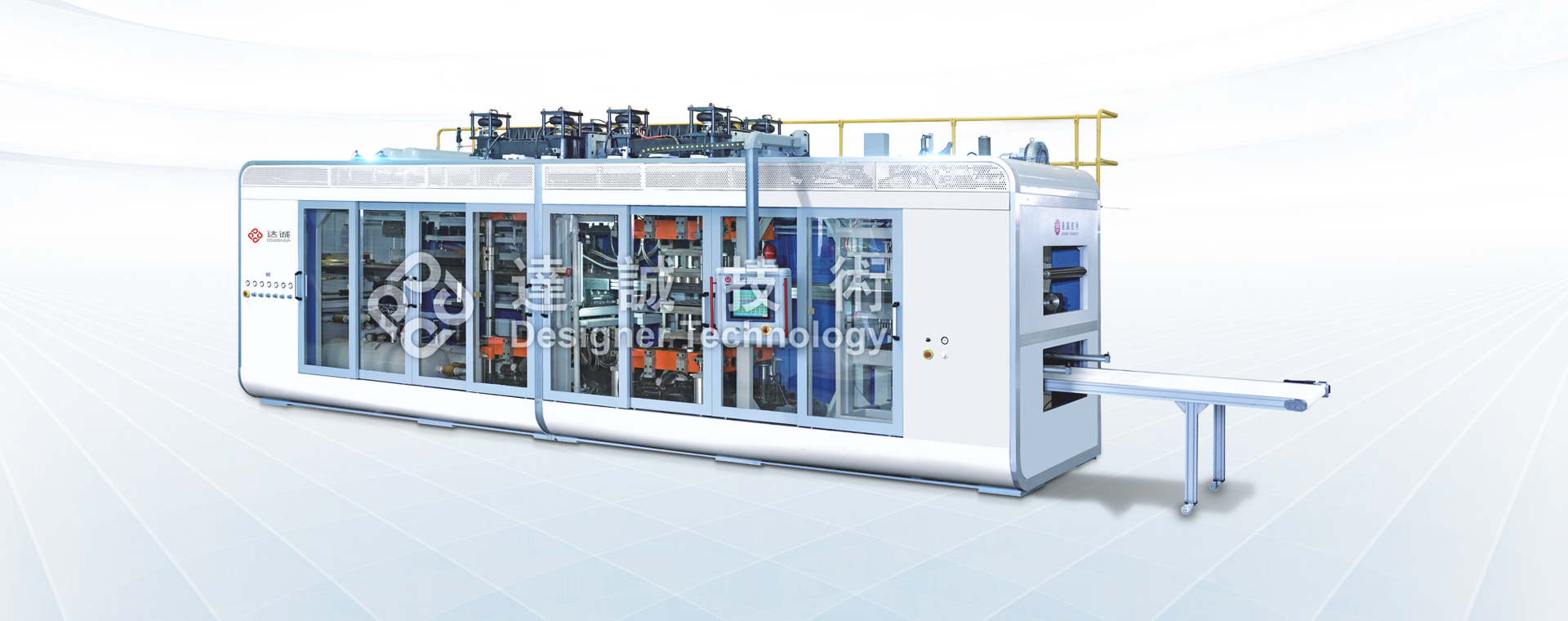 成型工位、沖孔工位、沖剪工位采用上下兩組伺服電機控制,驅(qū)動偏心輪連桿結(jié)構(gòu)分別帶動兩模臺上下運動并配備正負(fù)壓氣源,可實現(xiàn)產(chǎn)品正負(fù)壓成型。